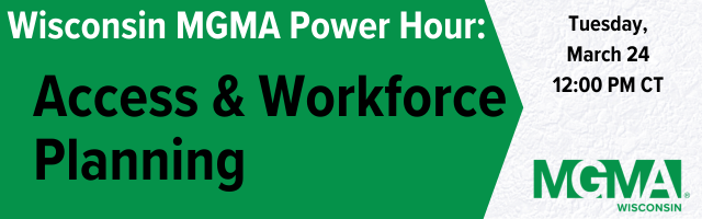 Join us for Wisconsin MGMA’s March Power Hour: Access and Workforce Planning, an interactive session focused on the challenges and strategies surrounding patient access and healthcare workforce sustainability. Medical group leaders will explore current access pressures, workforce shortages, and evolving care delivery models impacting practices across Wisconsin. Through discussion and shared experiences, participants will examine practical approaches to workforce planning, recruitment and retention, care team optimization, and operational strategies to improve patient access while maintaining quality and financial stability.
